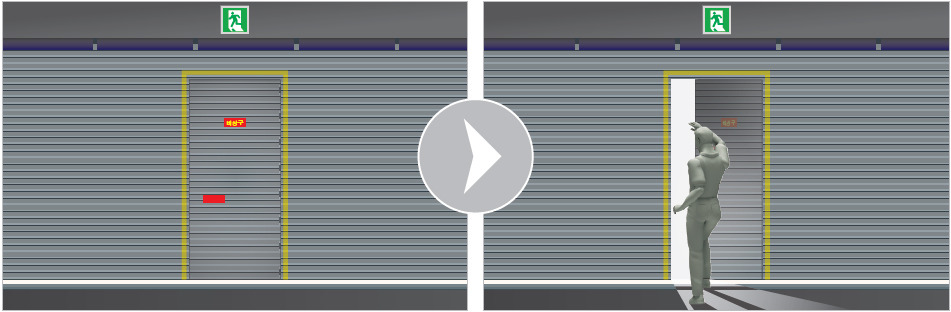 - 화재 발생 시 셔터가 내려와도 비상구를 통해 인명 대피 가능